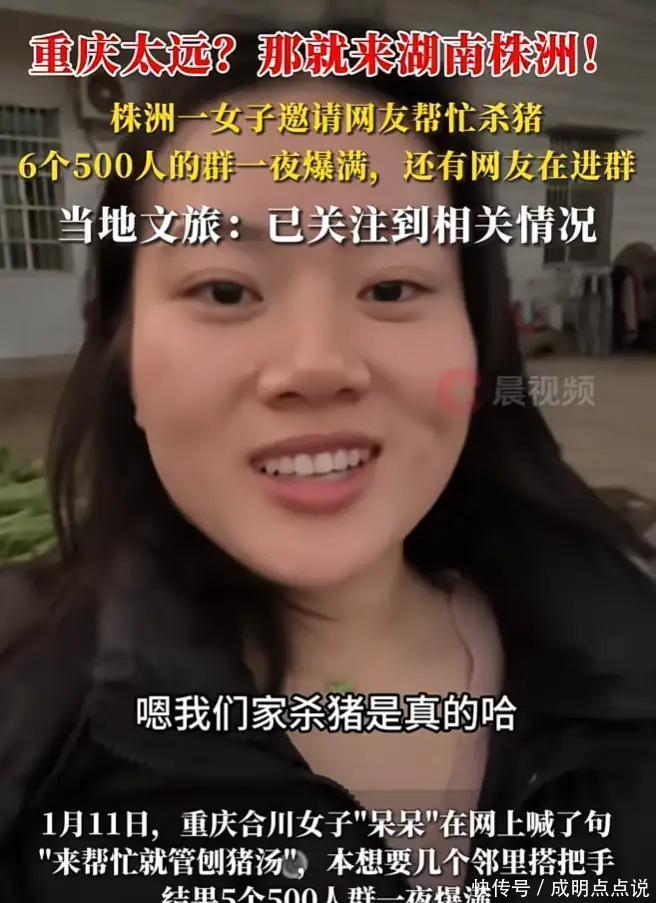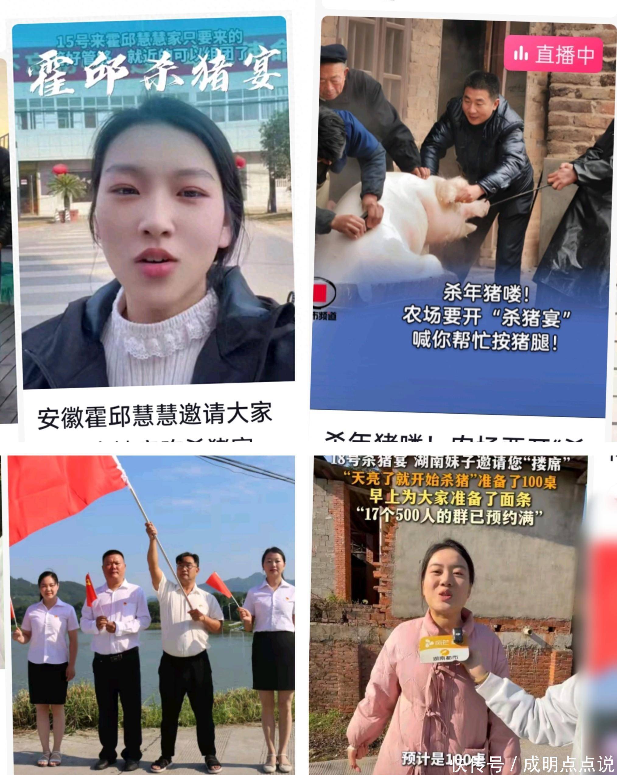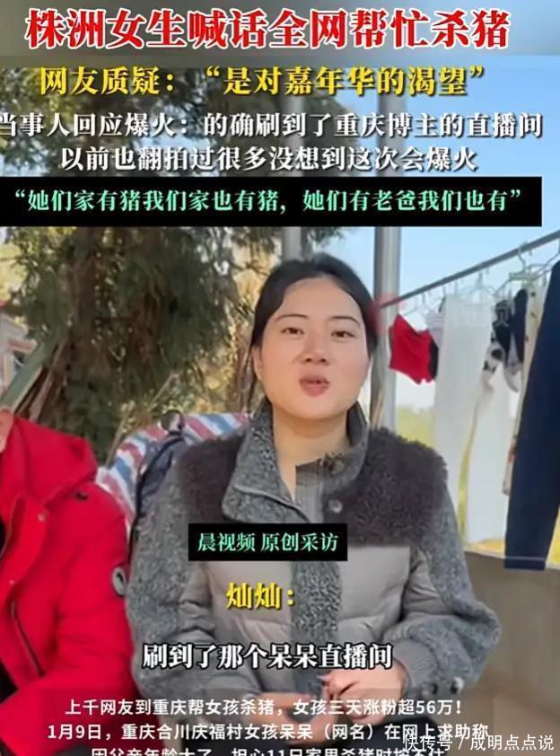 就说湖南那个灿灿吧,一看呆呆火了,立马跟风——家里正好养猪,干脆整十头,请大伙儿来吃刨猪饭,还说老父亲年纪大了,想热闹热闹。乍一听挺暖心,但细品不对劲。她话里话外都在较劲:“湖南不能输”“要崛起”,搞得像在打擂台。谁跟你比啊?人家呆呆压根没想红,就是单纯请顿饭,结果意外爆了;你倒好,从文案到直播,全是冲着流量去的。